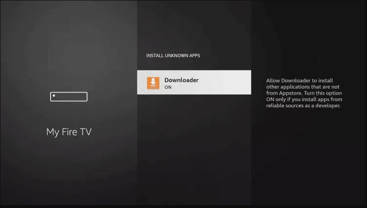 12. This will turn Unknown Sources to On for the Downloader app. This will enable side-loading on your device.