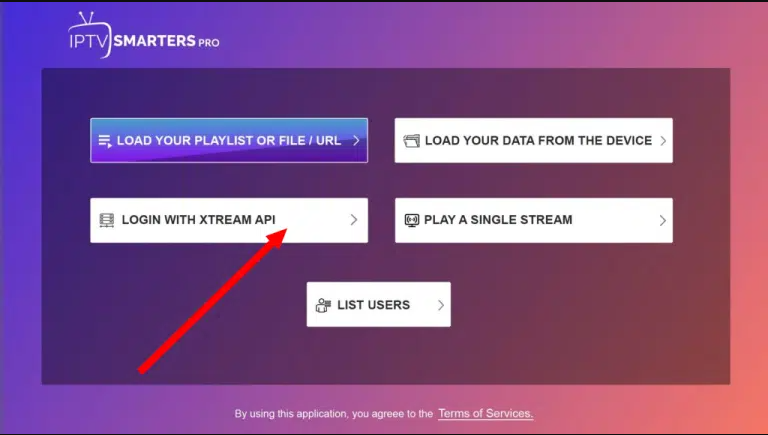 20. Una vez instalado, ábralo y elija iniciar sesión con Xtream Codes API e ingrese los datos de inicio de sesión que recibió por correo electrónico o WhatsApp.